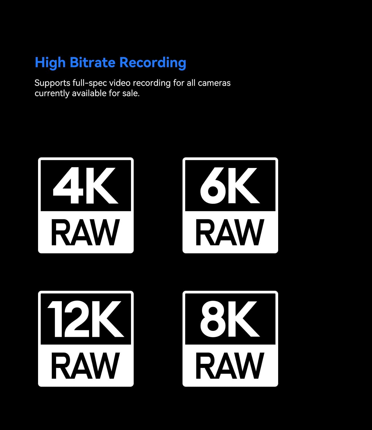 If you're mainly using it for everyday photography or 1080P or 4K video recording, 1TB should generally be enough. However, for users who record high-intensity videos, we recommend considering a 2TB product. You can estimate the required capacity based on the bitrate. For example, if the video recording bitrate is 2600 Mbps, it generates 325 MB of data per second. Therefore, 1000 seconds of video would result in 325 GB of data.