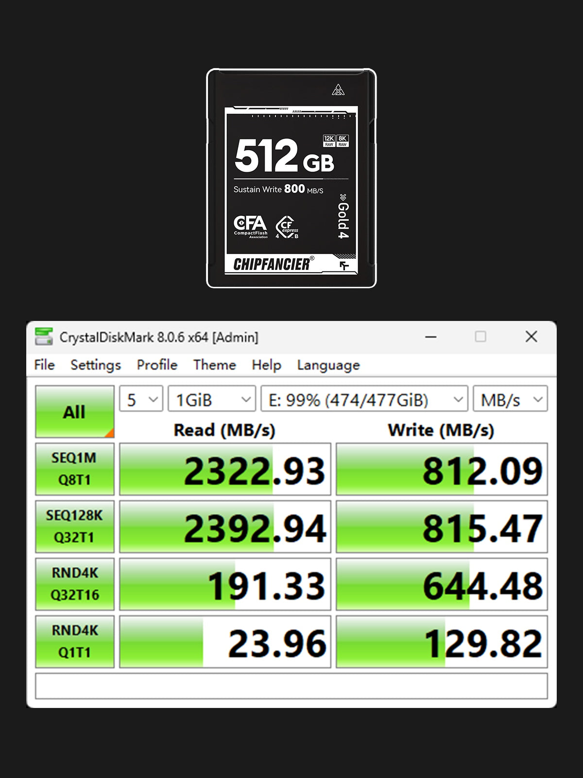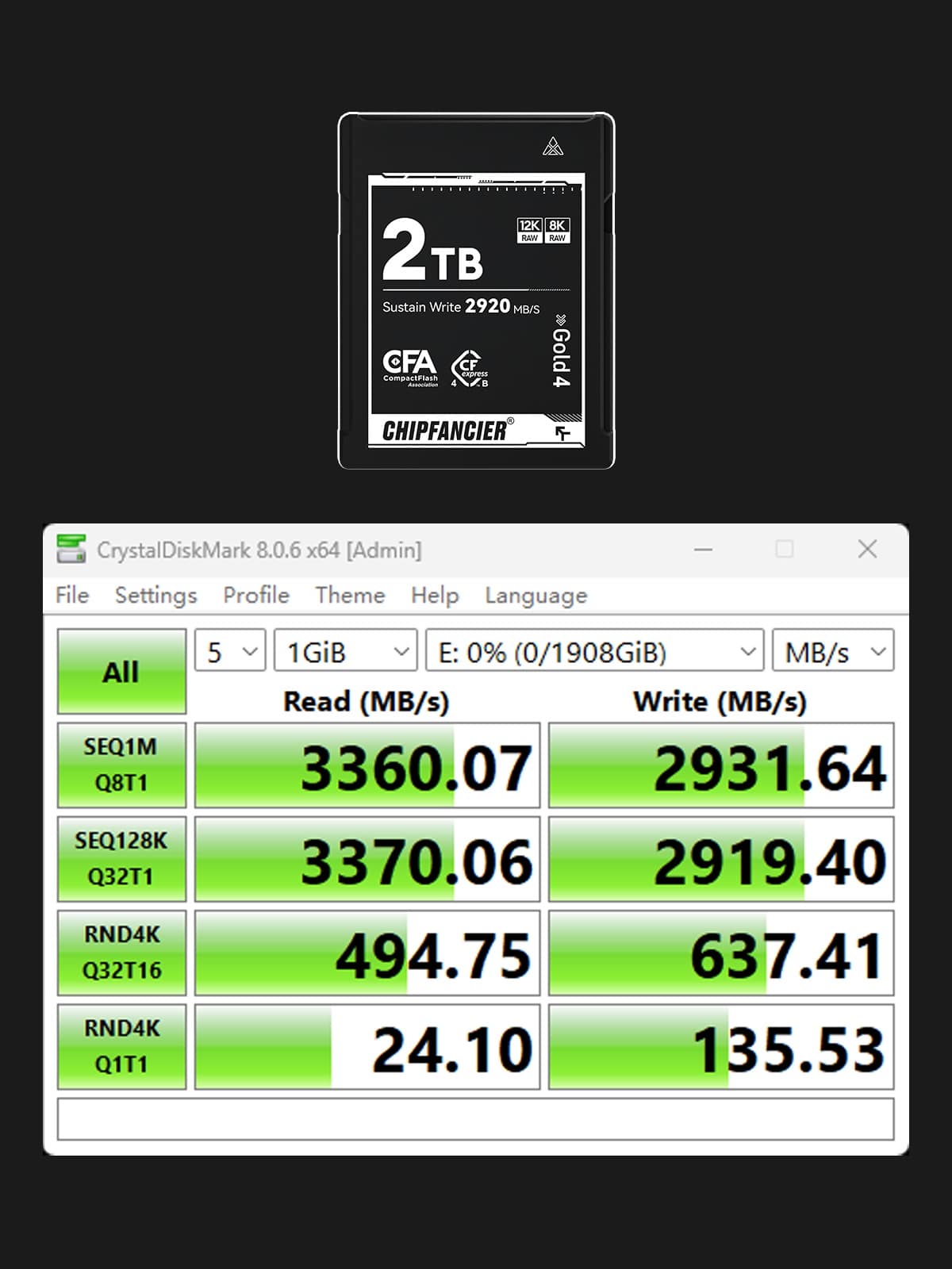 A:The Gold Edition CFB 4.0 uses the PCIe 4.0 protocol, which doubles the bandwidth compared to the old PCI CFB card. With the new controller and FLASH, it can operate at higher frequencies, resulting in a significant performance boost. However, as of May 2024, all cameras on sale still use the PCIe 3.0 protocol and cannot fully utilize the PCIe 4.0 performance.