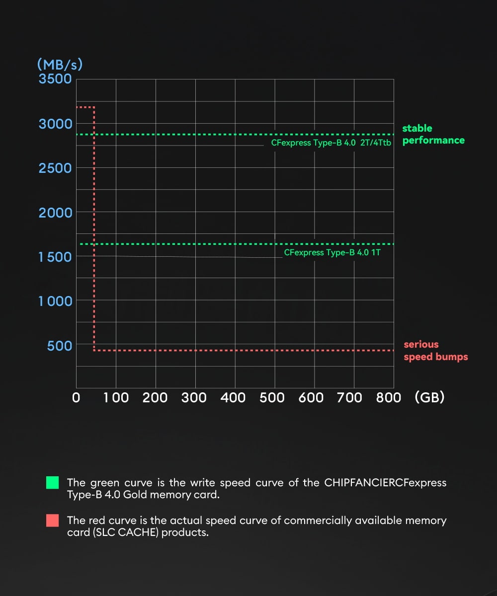 A:The Gold Edition CFB 4.0 uses the PCIe 4.0 protocol, which doubles the bandwidth compared to the old PCI CFB card. With the new controller and FLASH, it can operate at higher frequencies, resulting in a significant performance boost. However, as of May 2024, all cameras on sale still use the PCIe 3.0 protocol and cannot fully utilize the PCIe 4.0 performance.