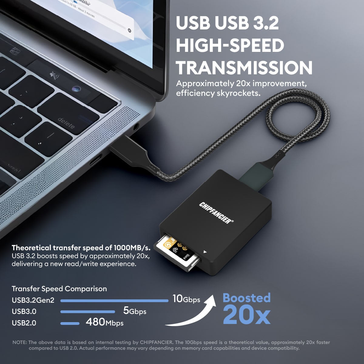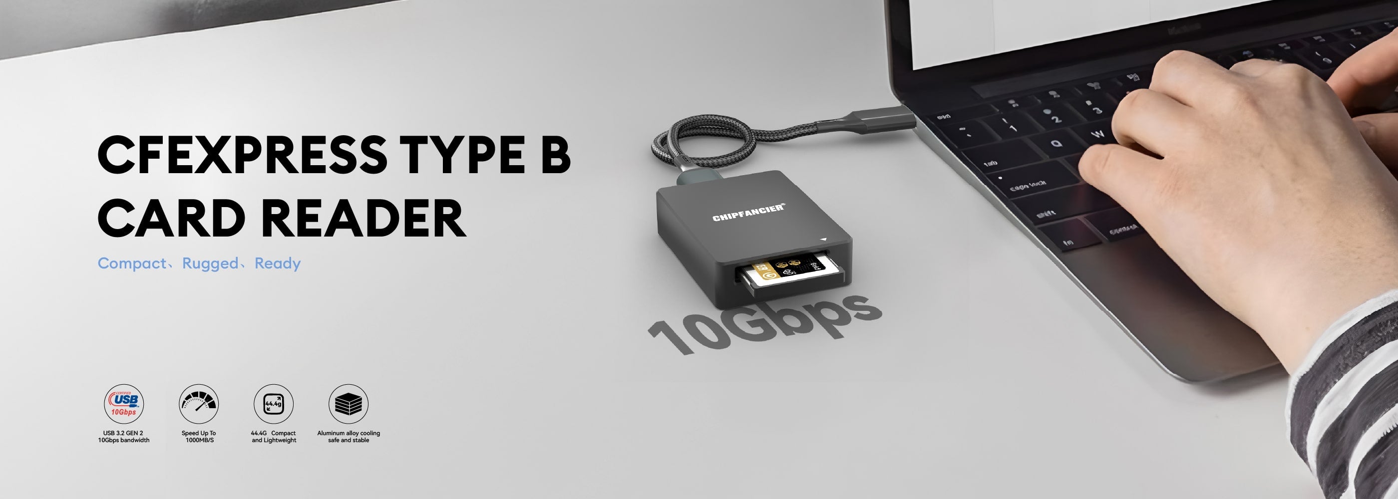 The Chipfancier CFexpress Type B Card Reader is designed for photographers, video creators, and professionals, delivering high-speed, stable, and secure memory card reading and writing performance.
